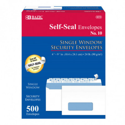 Quick view BAZIC Products® NUMBER10 Self-Seal Security Single Window Envelopes, Box of 500 $57.99 Add to cart Wishlist Compare