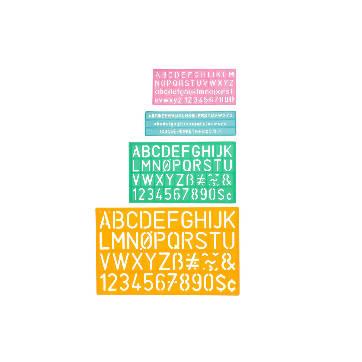 Westcott's LetterCraft plastic lettering stencils are exactly what you are looking for in crafting. Perfect for home, school, or office, they are easy to use for posters, signs, reports, or anywhere stylish lettering is needed. Their smooth die-cut edges provide a sharp outline for tracing, and their non-glare plastic stencil guides make letter alignment a snap. Each set includes 4 stencils with uppercase letters & numbers: 1/4" (6 mm), 1/2" (1 cm), 3/8" (3 cm), and 7/8" (21 mm).