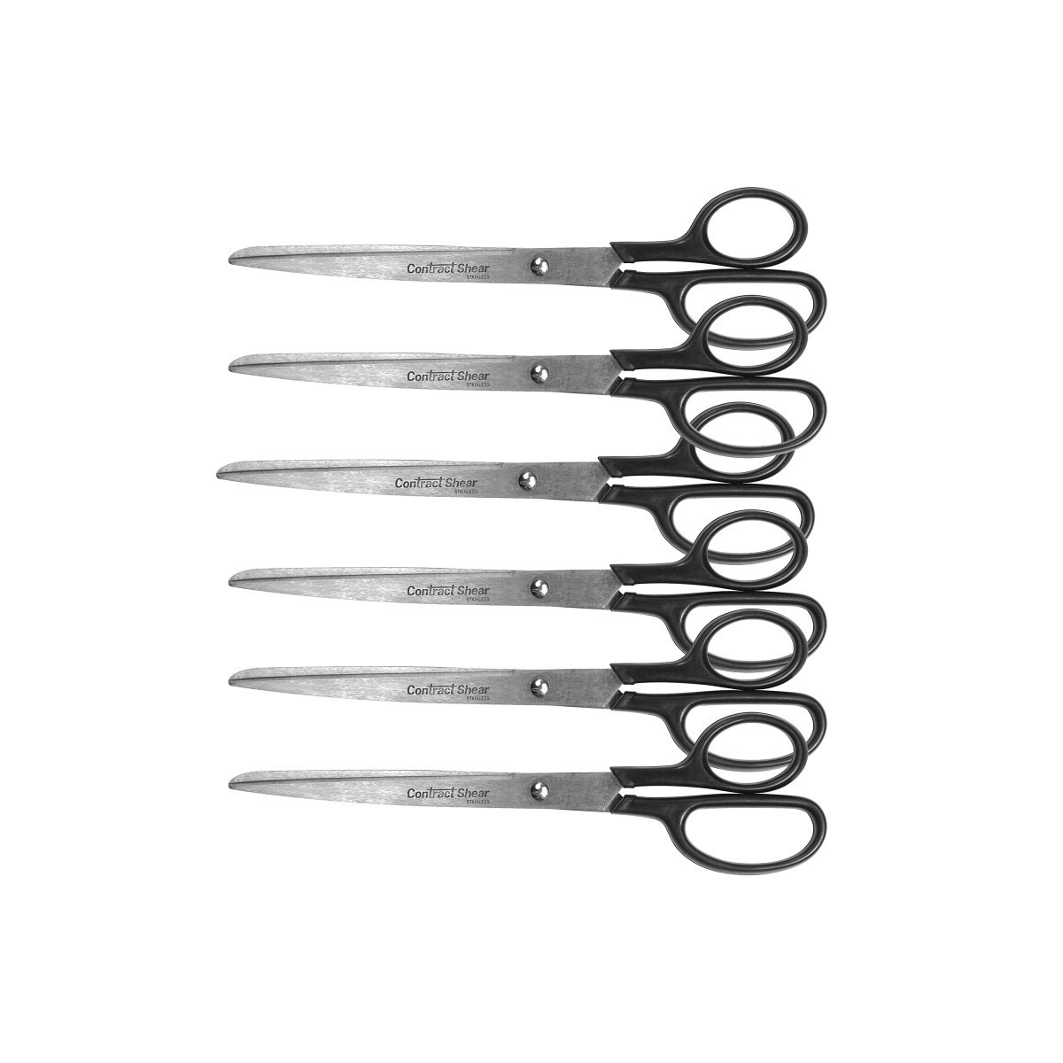 Westcott Stainless Steel Scissors feature lightweight black handles and 9" blades. For left or right-hand use. Perfect for light duty use, cutting through paper, ribbon and photos. Sold as a pack of 6.