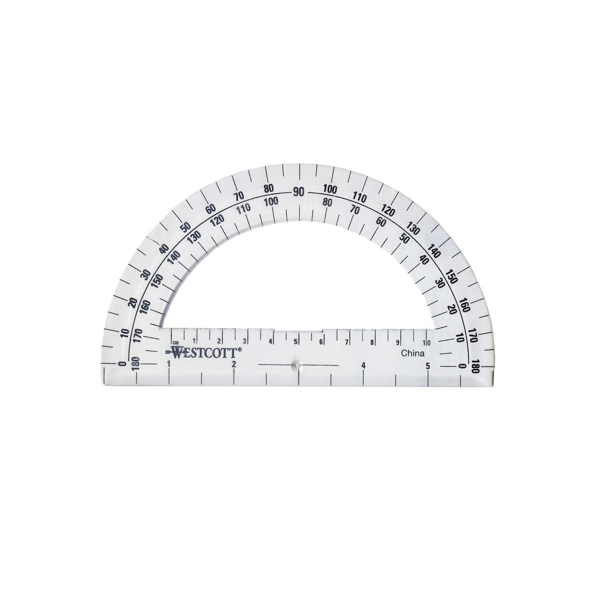 From the leader and cutting and measuring products, Westcott is dedicated to supporting education and inspiring creative activities in the classroom and at home. Products are specifically designed for growing students, created to be fun and functional with superior quality and exceptional value. The Westcott 180 degree protractor is made of sturdy plastic and comes in protective sleeve. Features 0 to 180 degree measurements in 5 degree increments, and a ruler at the bottom for convenient measurements.
