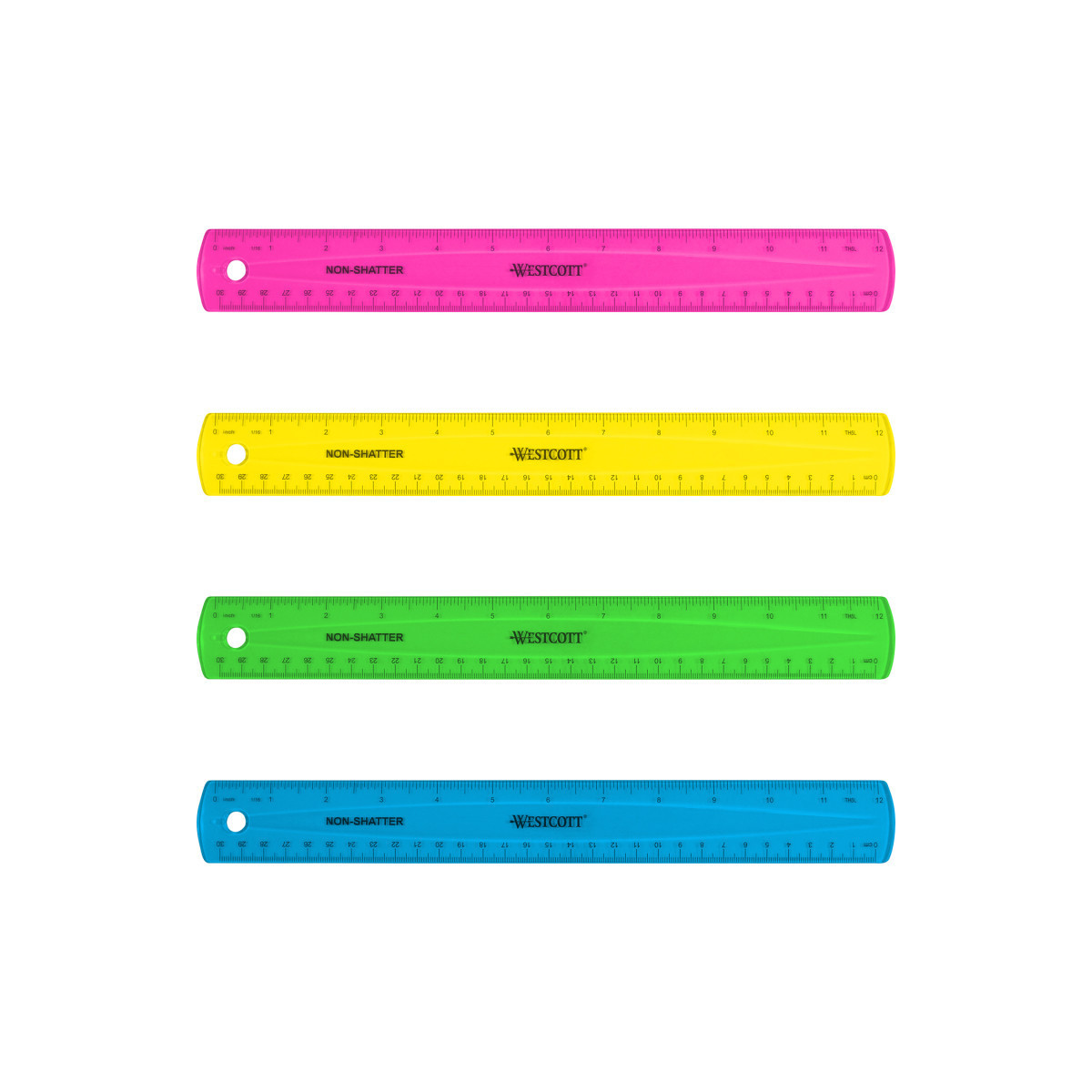 Westcott® offers a wide range of anti-microbial products that contain an antimicrobial agent to help inhibit the growth of bacterial stains and odors. Westcott® Drafting & Drawing Tools are some of the finest products of their kind for students and professionals. Our commitment to meticulous quality and cutting edge innovation in measurement and art materials has earned an unparalleled reputation. This 12" Shatterproof Ruler features total flexibility and clarity of measurement. Bend this flexible ruler and it returns to its original shape. Translucent color allows for viewing through to the page. Scaled Metric & 1/16th and includes hang hole for convenient storage. Suitable for use in the home, school, shop or office. Sold individually in assorted colors (no color choice).