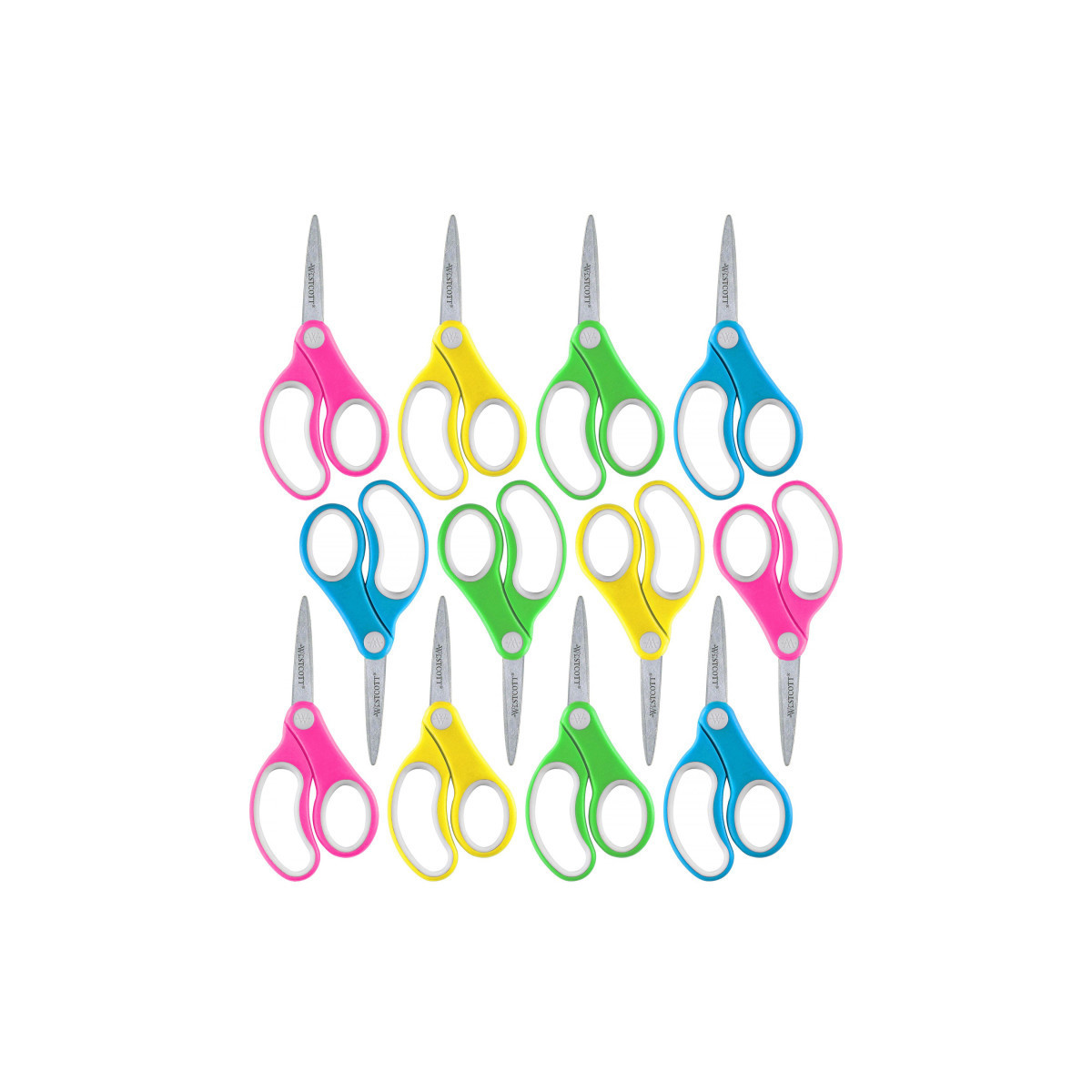 Westcott scissors feature stainless steel blades and comfortable soft handles that are suitable for left-handed and right-handed children. 5" Pointed Scissors are specially designed for a child's hand. An inside grind on the stainless steel blades mean they are accurate and dependable. These scissors cut easily through paper, fabric, string, and other craft material. Westcott is dedicated to supporting education and inspiring creative activities in the classroom and at home. Products are specifically designed for growing students, created to be fun and functional with superior quality and exceptional value. For ages 6 and up. Sold as a pack of 12 in assorted colors (no color choice).