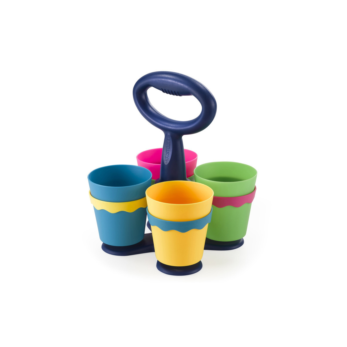 The Westcott School Scissor Caddy contains an antimicrobial agent to help inhibit the growth of bacterial stains and odors. Features 4 colorful removable cups for easy scissor storage and access. Holds 24 pairs of 5" kids scissors (sold separately)