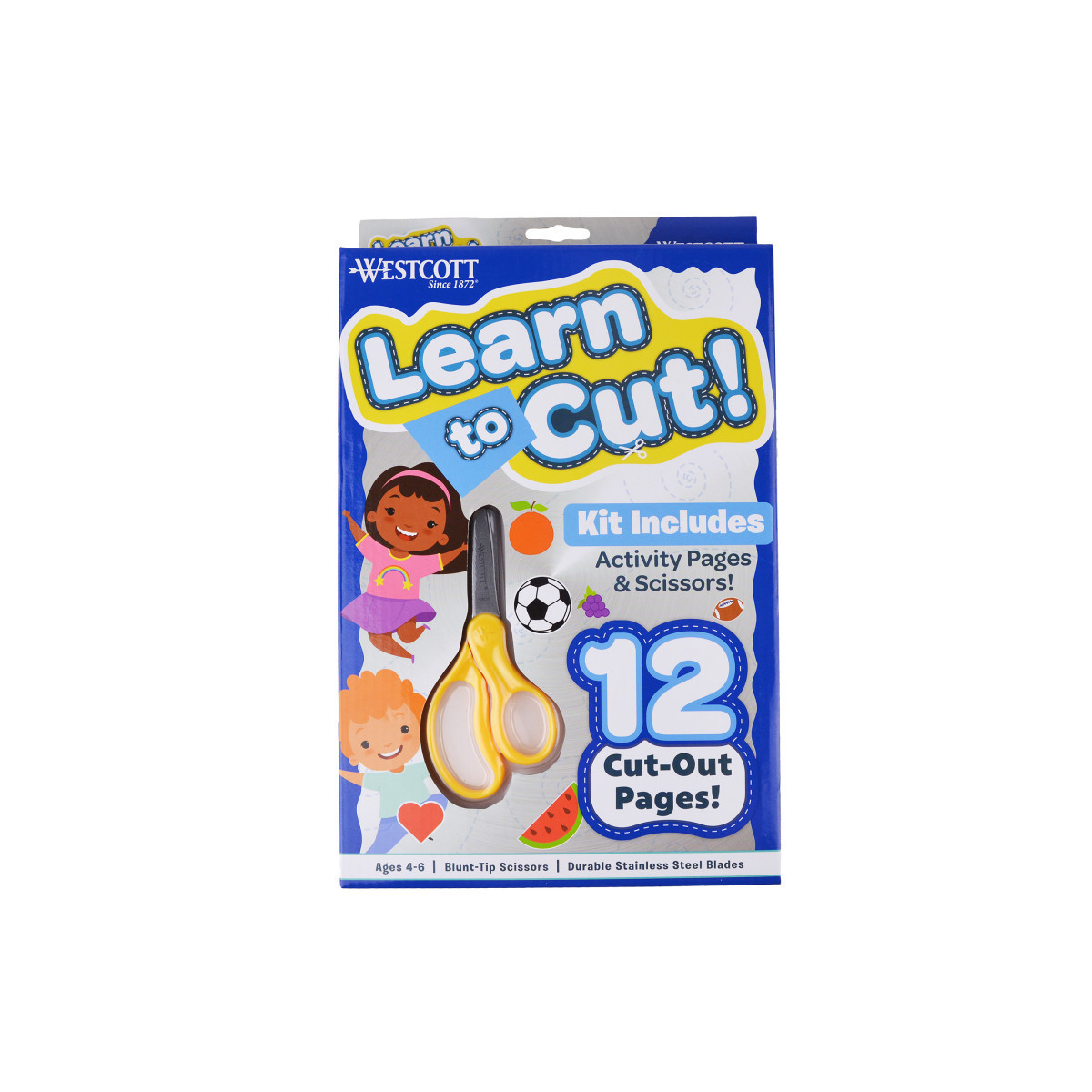 Learn-to-Cut Kit includes 12 fun, cut-out pages and one pair of 5" blunt-tip scissors for kids.