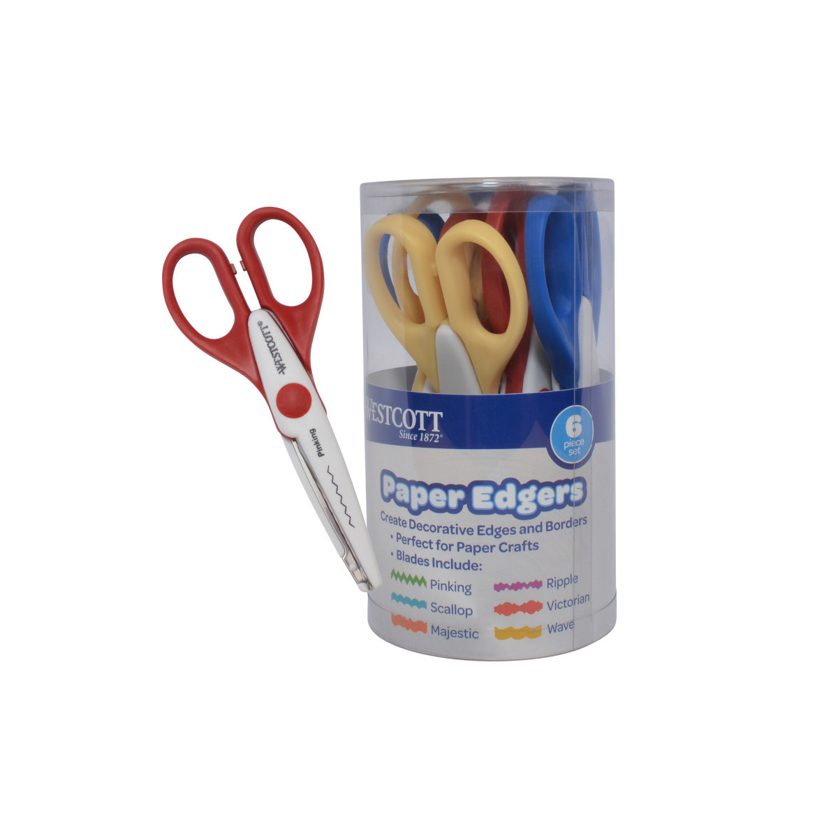 - Westcott® Papers Edger scissors come in an assortment of 6 different blade edges for various decorative cuts.