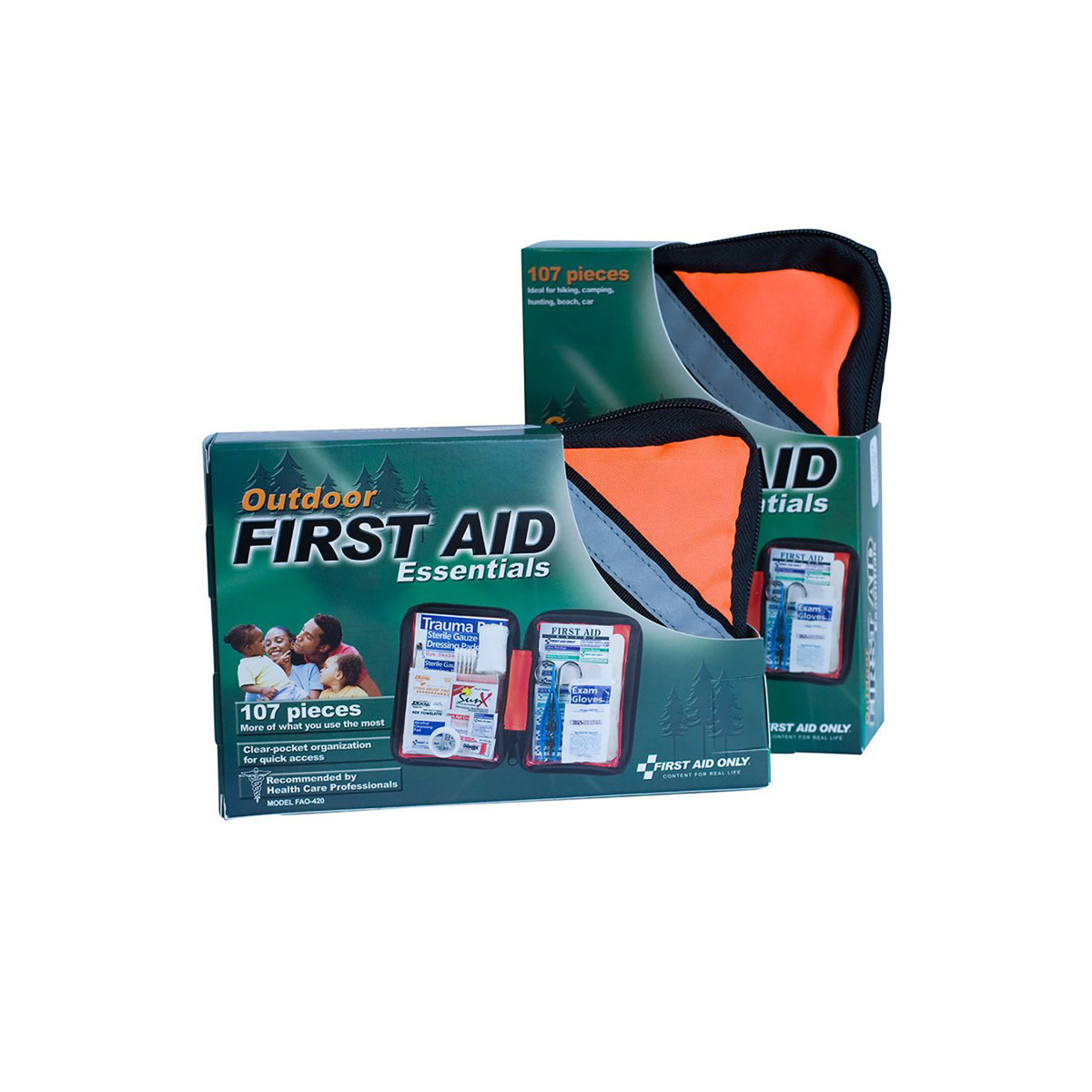 This First Aid Kit is perfect for hiking, camping, marine adventures, home and auto. Our outdoor soft sided kit features all the essential first aid items for minor aches and injuries. Includes first aid essentials. Supplies are easy to find in clear pocket pages.
