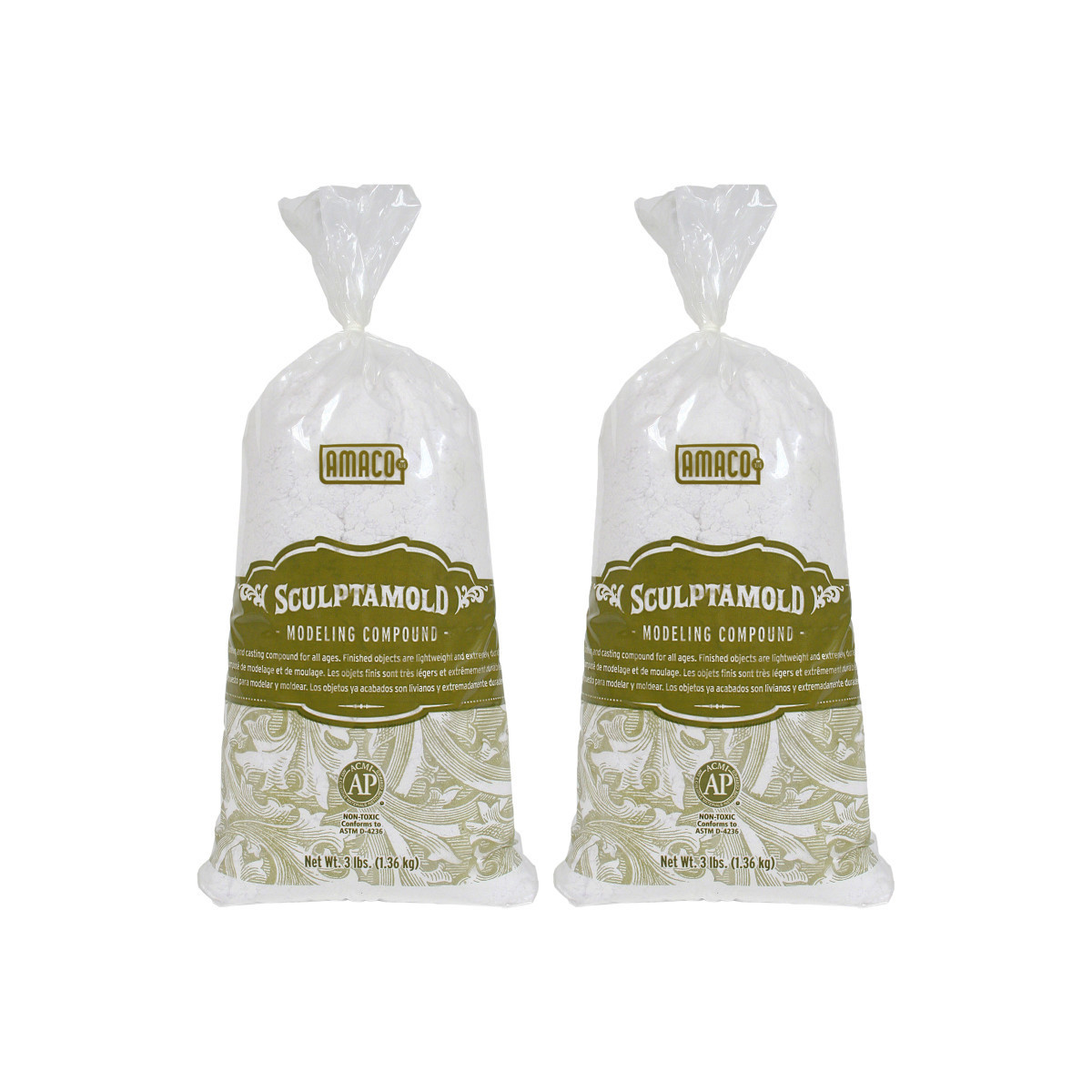 Each 3 lb. bag of Sculptamold® will make 141.75 cubic inches of solid material. Sold as 2 bags for a total of 6 lb. of Sculptamold®.