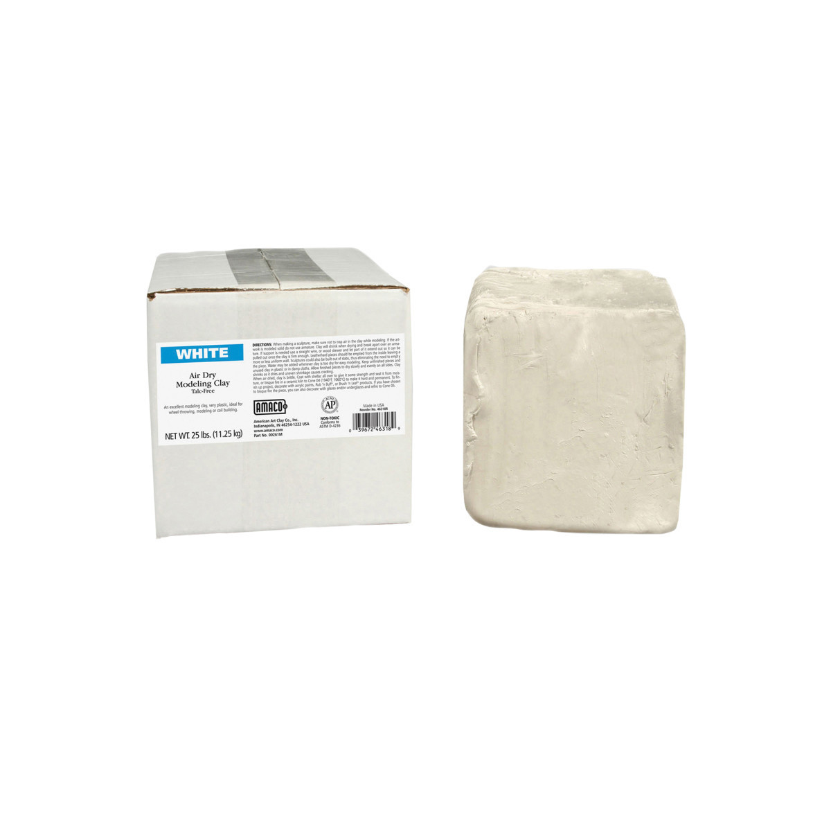 Our inexpensive all-purpose air dry clay is perfect to sculpt, hand model, or throw on a potter's wheel. Air dry your finished pieces slowly and evenly on all sides. Decorate with paint. Seal with shellac for strength and to waterproof. This clay can also be fired to cone 04 for hardness/permanence and to glaze. Includes 25 lbs. of white air dry clay.