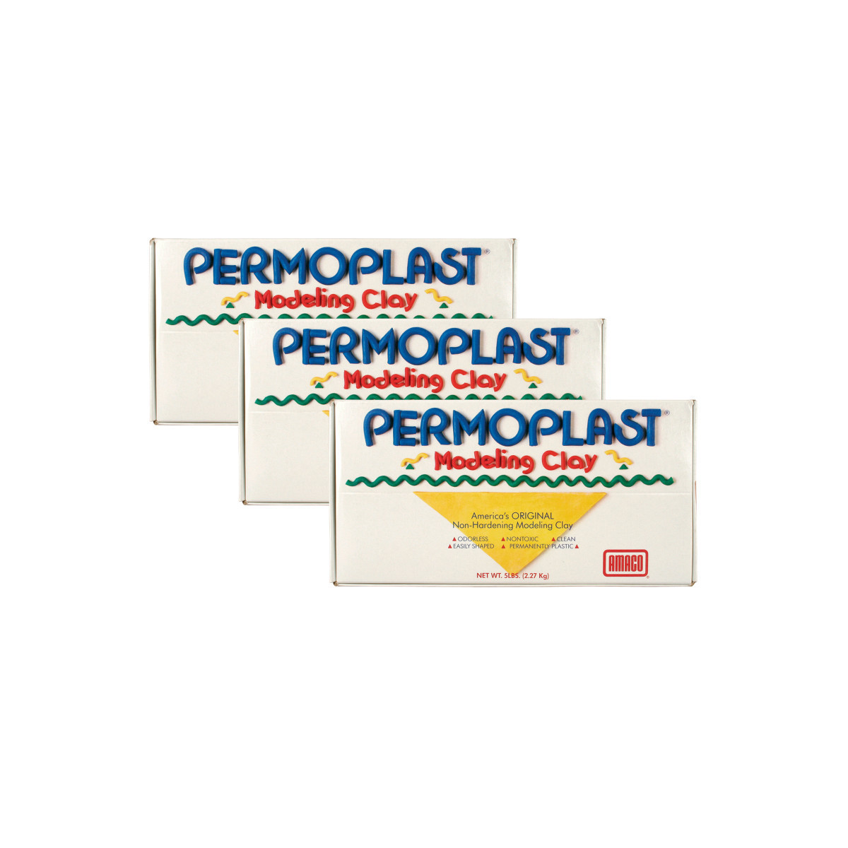 Permoplast® Non-Hardening Modeling Clay is America's original non-hardening modeling clay. This product is odorless, nontoxic, and clean to use. This plastic clay can be reused when stored airtight. This non-hardening clay is great for developing small motor skills and hand/eye coordination. Each box includes 1 lb. of clay. Sold as 3 boxes for a total of 3 lbs. of clay.