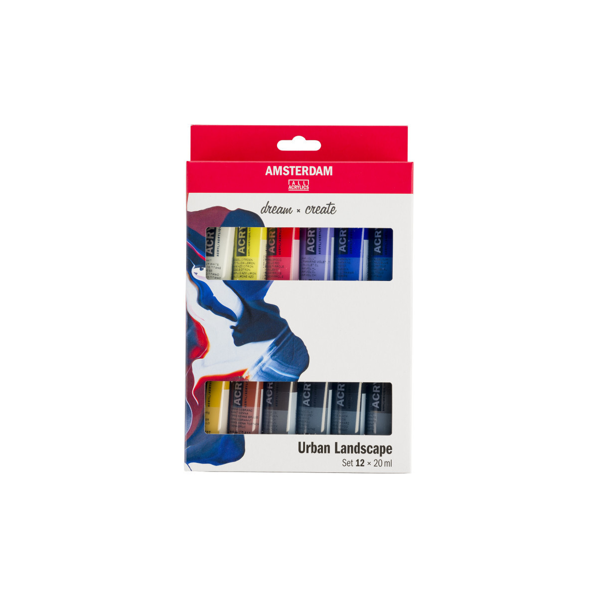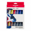 Amsterdam Standard Series Acrylic offers you the broadest range of remarkably vibrant acrylic colors. This versatile paint is easy to work with and offers a smooth application. Use the paint straight from the tube or thinned with a little bit of water or one of our acrylic mediums. Colors in the set include Titanium White #105, Azo Orange #276, Pyrrole Red #315, Ultramarine Violet Light #519, Ultramarine #504, Phthalo Blue #570, Yellow Ochre #227, Burnt Sienna #411, Vandyke Brown #403, Payne's Grey #708, Oxide Black #735, Graphite #840.