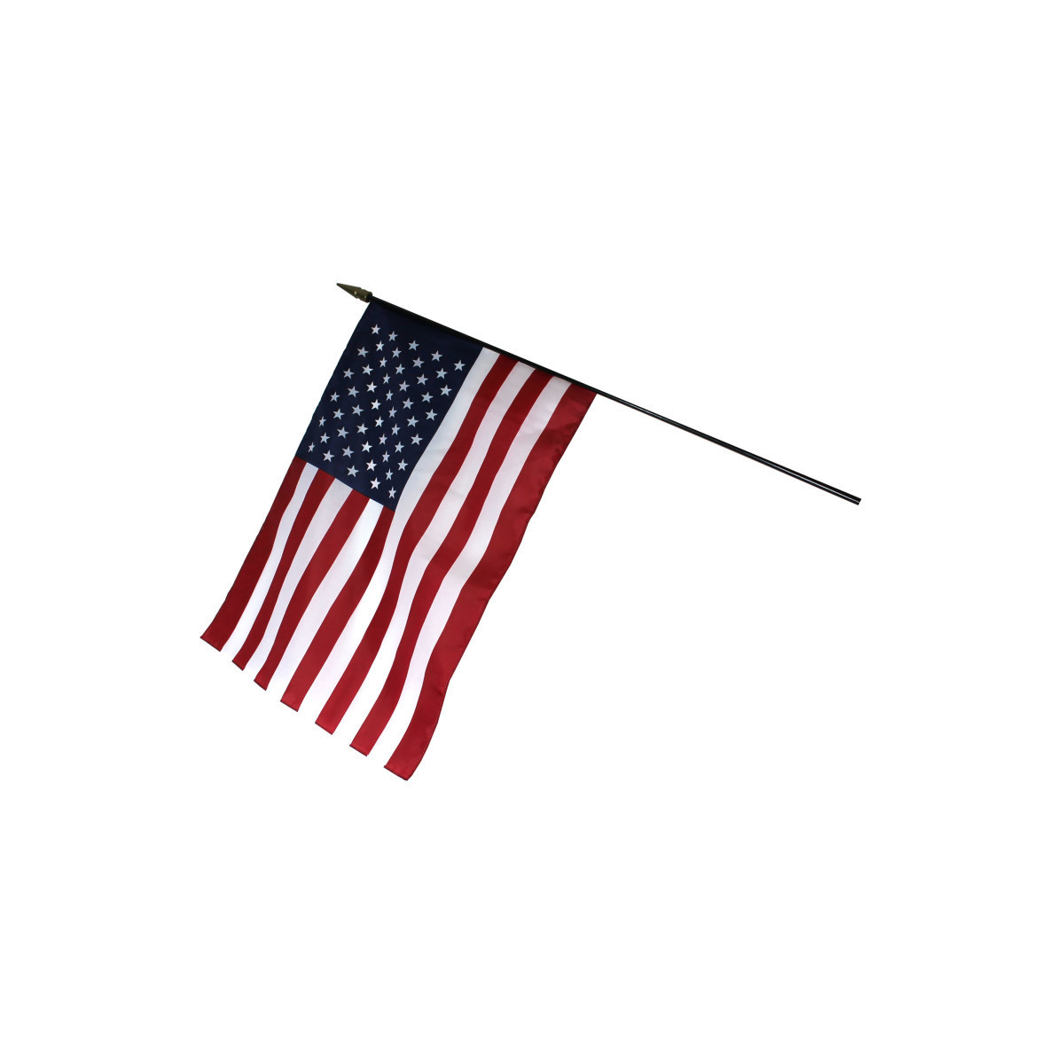Empire brand U.S. Flags are a quality line of indoor flags specifically designed to use in classroom settings. These flags are an indispensable part of any classroom. Dyed in brilliant colors on silky rayon material. All hems are stitched and securely stapled to ebonized staffs with gilded spearheads. Flag measures 16" x 24", staff measures 3/8" x 36".