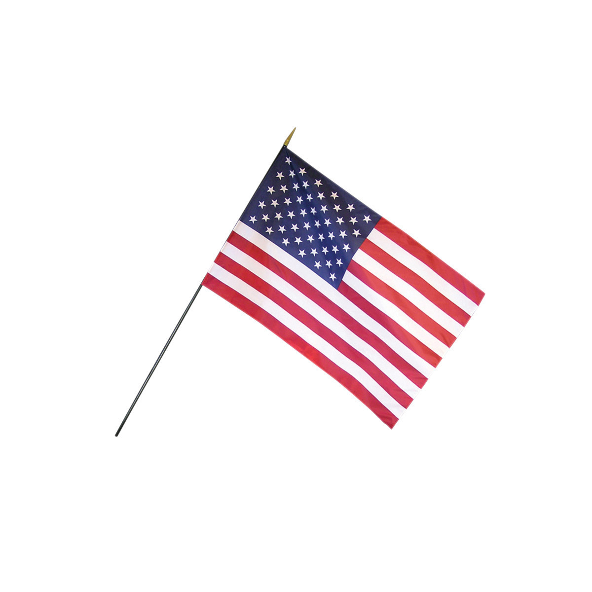 Empire brand U.S. Flags are a quality line of indoor flags specially designed for use in classroom settings. Anco-dyed in brilliant colors on silky rayon material; hem-stitched and securely stapled to ebonized staffs with gilded spearheads. Flag Size: 24" x 36". Staff Size: 7/16" x 48".