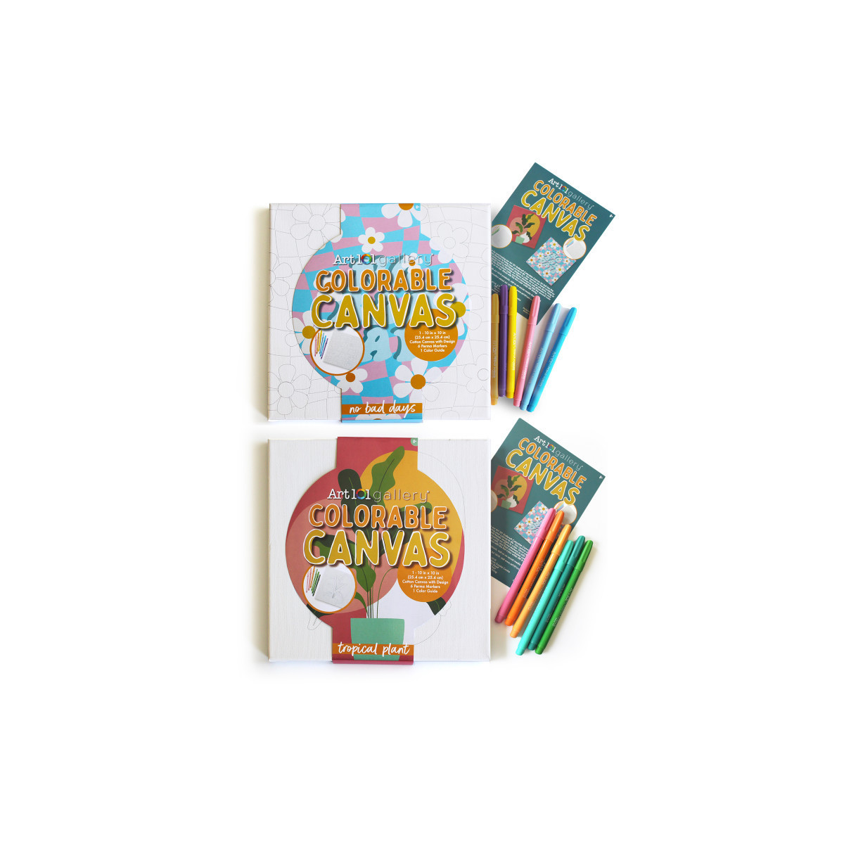Unleash your inner artist and unwind after a long day with our Art 101 Gallery Colorable Canvas Wall Art Set Two Pack with Perma Markers! This set comes with two 10 inch by 10 inch stretched cotton canvases with trendy designs, carefully curated by our design team to spruce up your home, office, dorm room, or any personal space! Also included are 12 Perma Markers, our highly pigmented and vibrant markers that are perfect for adding color to your canvas. While you can use any medium of your choice to complete your canvas, our markers are easy to use and have minimal clean-up! Use your markers for additional coloring projects once your canvases are finished. Lastly, we also provide a color guide with each design that serves as a suggestion on how to use your markers to color your canvases, however, we highly encourage you to get creative and personalize your design! Hang your canvases together for a gallery effect or separately to add color to multiple spaces.