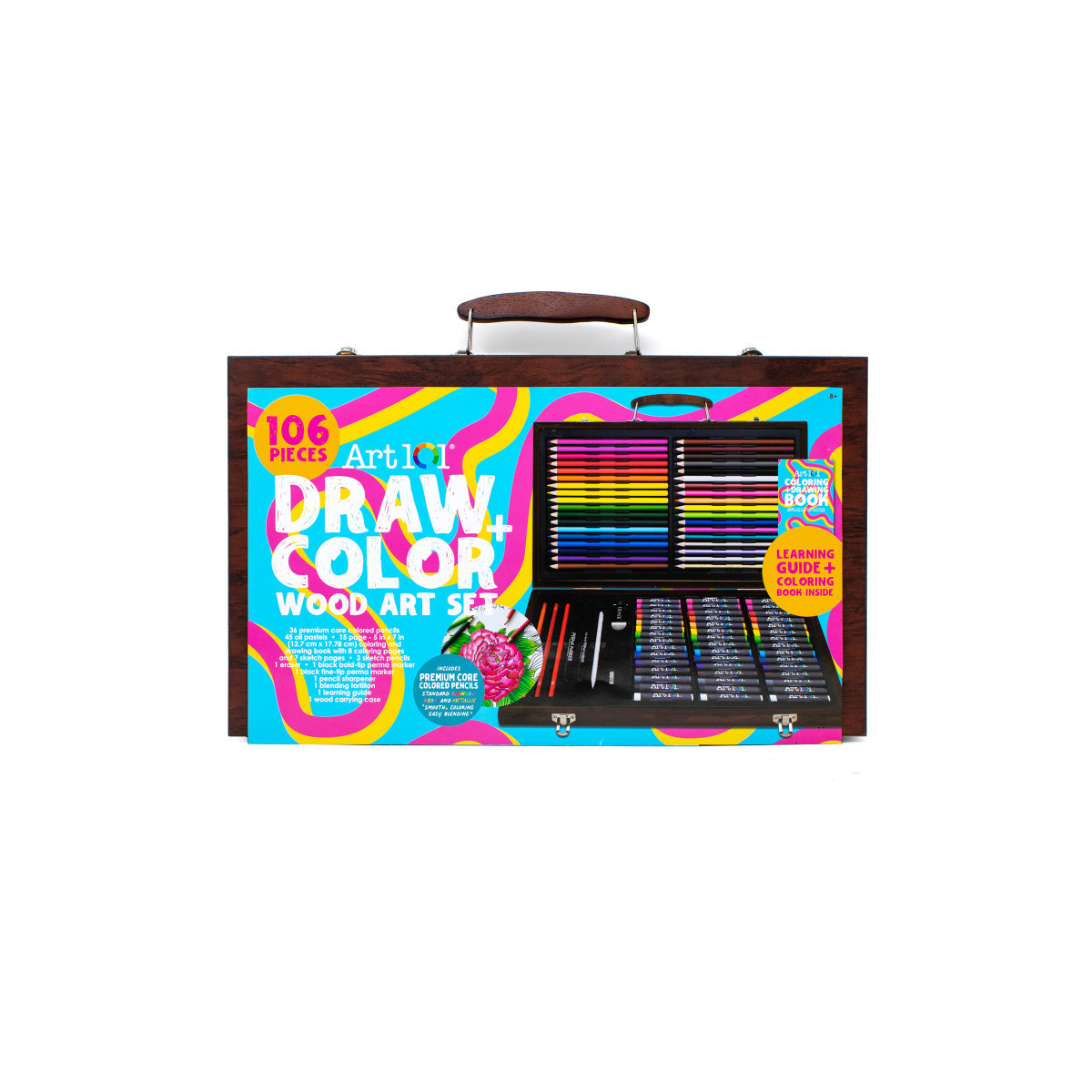 Color 106 Piece Art Set in a Wood Carrying Case was made with the artist who is passionate about drawing and sketching in-mind!