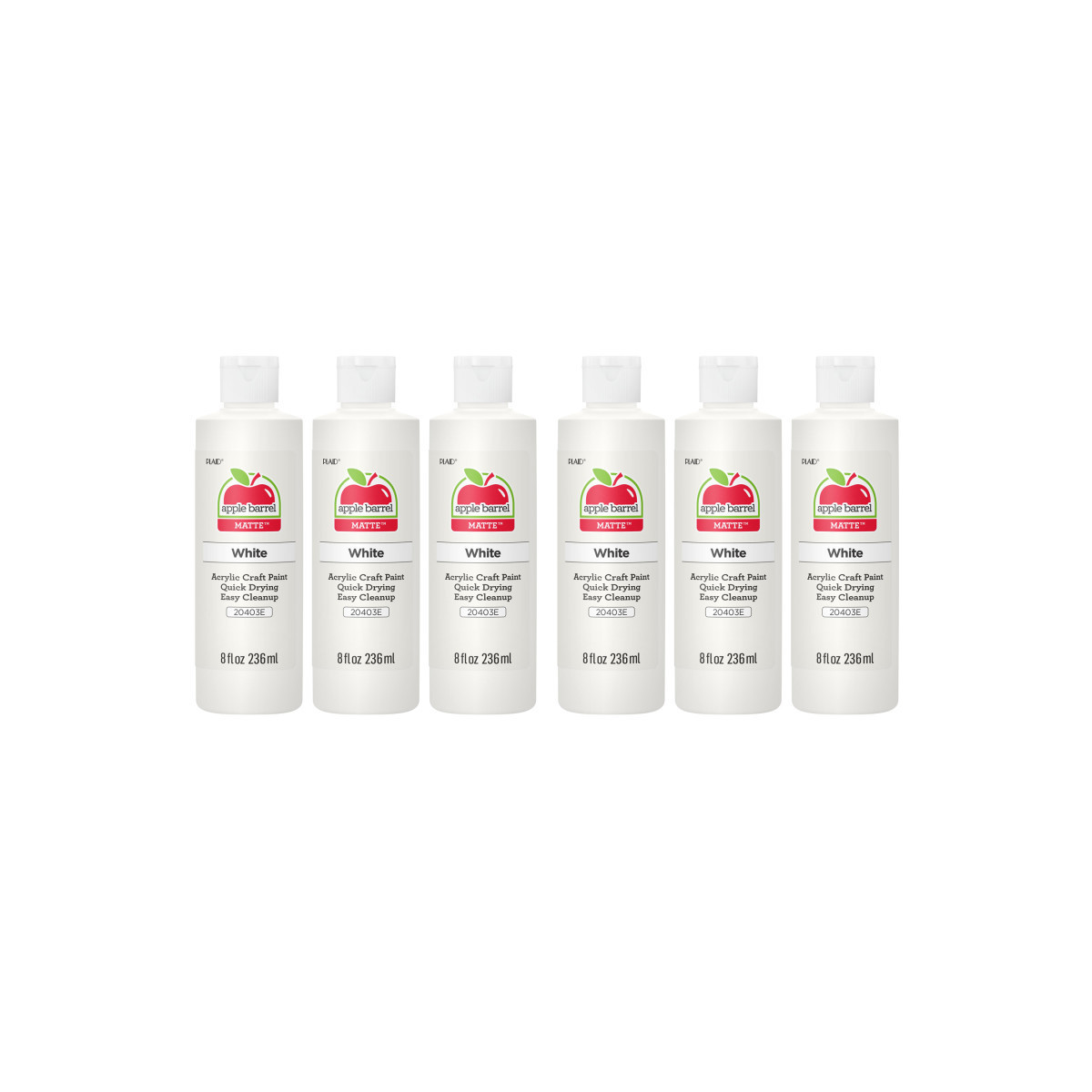 Apple Barrel Acrylic Paint Matte, 8oz., White, Pack of 6