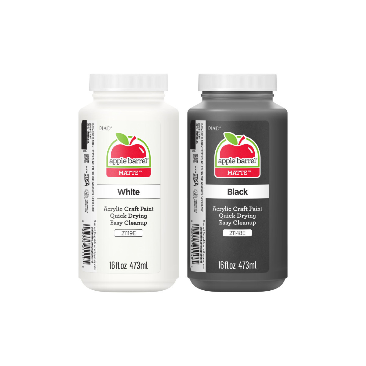 CONVENIENT SIZE - This Apple Barrel Acrylic Paint Set comes with 16 oz paints great for basecoating, stenciling, and so much more. The colors included in this set are: Apple Barrel Black and White