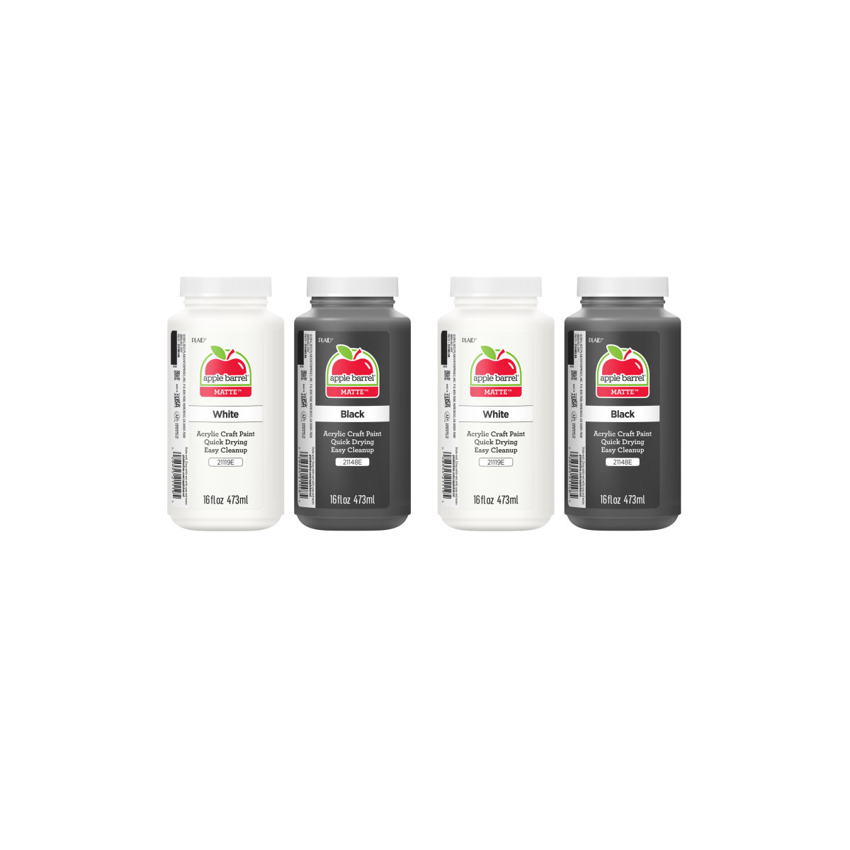 CONVENIENT SIZE - Sold as 2 sets, each Apple Barrel Acrylic Paint Set comes with two 16 oz paints great for basecoating, stenciling, and so much more. The colors included in this set are: Apple Barrel Black and White