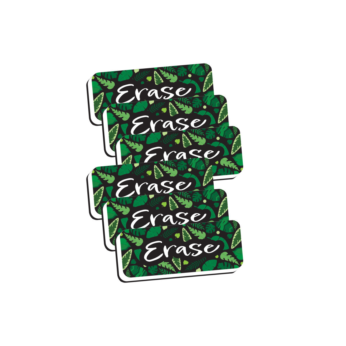 Fun and colorful design to brighten up your magnetic whiteboard. Easy to grip and hold for adults and children. Use with dry erase markers. Eraser is made from a durable foam with a black felt erasing surface. Built in magnet helps to easily stick to magnetic whiteboards and other magnetic surfaces. Measures 2" x 5". Sold as a pack of 6 erasers.