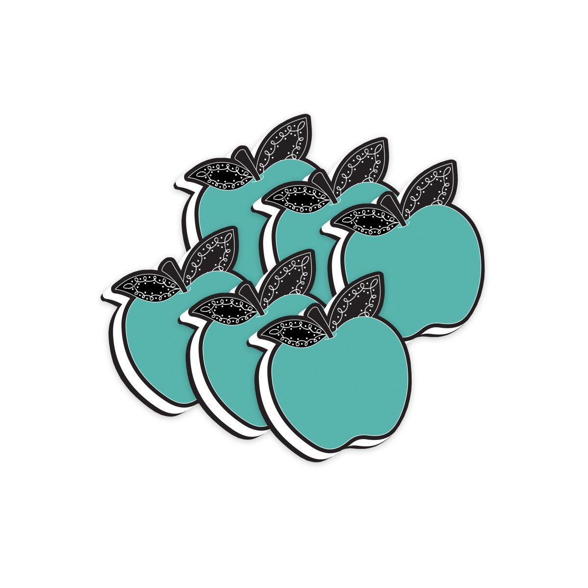 Ashley Productions® Magnetic Whiteboard Eraser, Teal Apple with Chalk Loop Leaves, Pack of 6