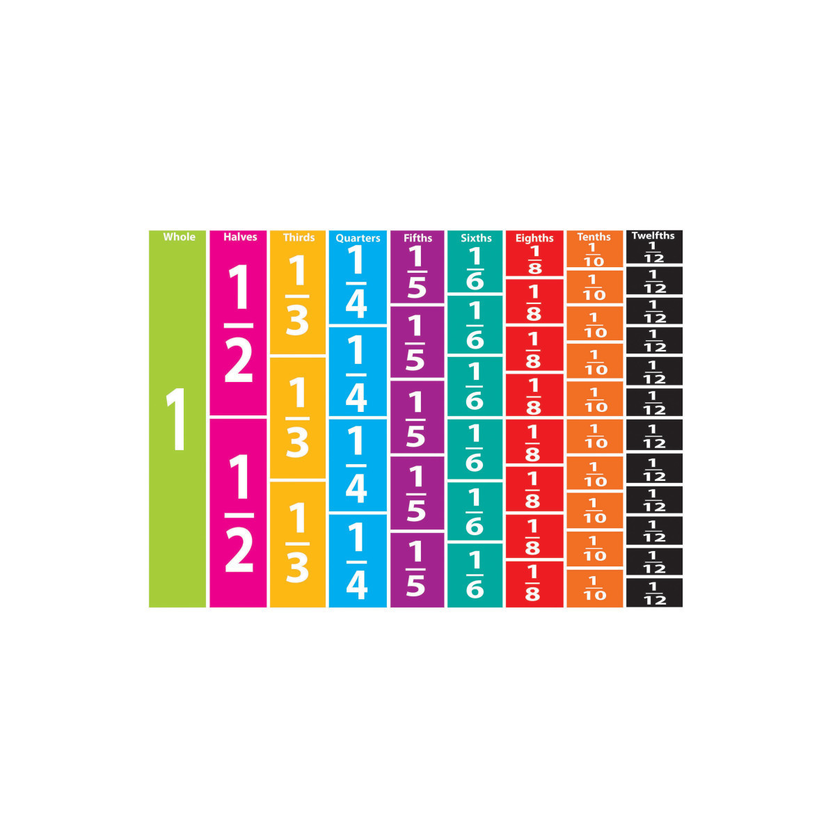 Die-cut magnetic fractions comes on 8.5" x 11" easy punch out sheet. Great for use in the classroom or at home! Great color scheme to help the eye pick out different pre-printed fractions, and great for learning and improving math skills. Write-on/Wipe-off surface allows use with dry erase markers or chalk pens! Includes 51 pieces of pre-printed fractions.