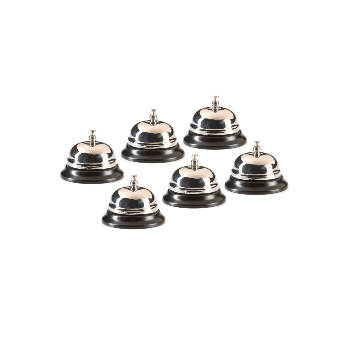 Ashley desk call bells have a design that is time-tested and is a favorite in all classrooms. Features a 3" base. High quality bells. Great for teacher gifts or classroom use. Sold as a pack of 6 bells.