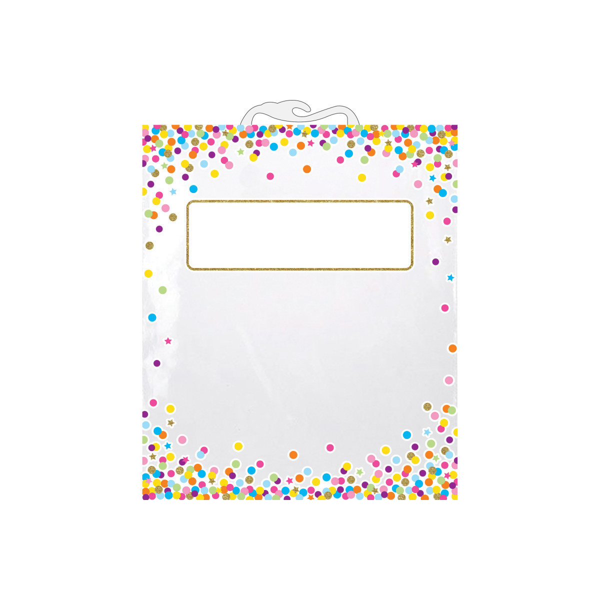 Store, organize and safeguard documents, pictures, projects, homework and more. Use to carry around books. Clear plastic poly bag comes with a strong snap-shut handle that makes it easy for students to take home. Blank space on the front allows for writing names, assignments or any type of label. Extra strong and durable material. Measures 10.5" x 12.5.