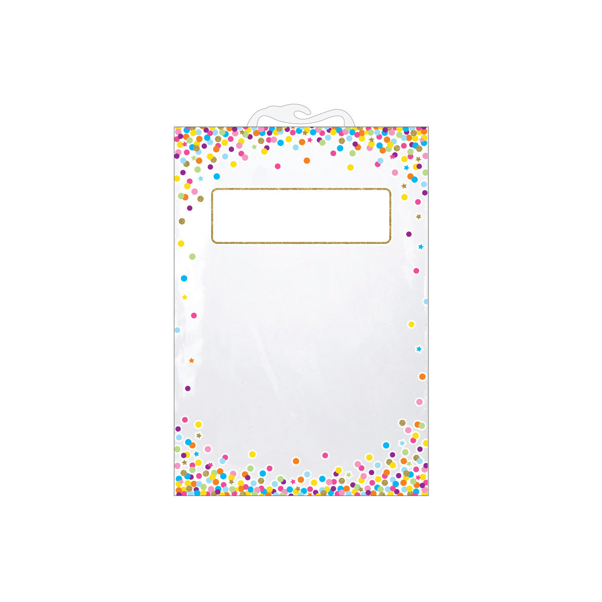 Store, organize and safeguard documents, pictures, projects, homework and more. Use to carry around books. Clear plastic poly bag comes with a strong snap-shut handle that makes it easy for students to take home. Blank space on the front allows for writing names, assignments or any type of label. Extra strong and durable material. Measures 11" x 16". Pack of 5.
