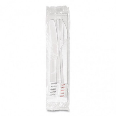 Quick view Medium Heavyweight Cutlery Kit, Fork/Knife/Napkin/Pepper/Salt/Spoon, Plastic, White, 250/Carton $45.82 Add to cart Wishlist Compare