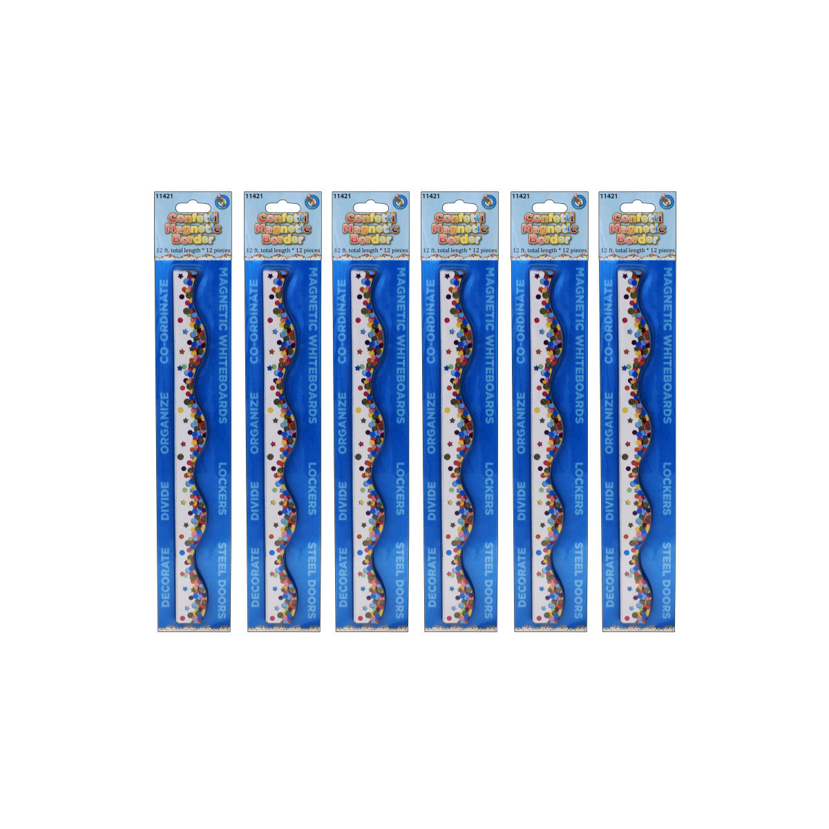 Great for decoration in the classroom or at home! Mix or match with coordinating decor! Use on magnetic whiteboards, steel lockers, refrigerators, and more. Wipe clean with damp cloth. Each piece measures 1" x 12". Each pack includes 12 pieces, for a total of 12 feet. Sold as 6 packs for a total of 72 pieces (72 feet).