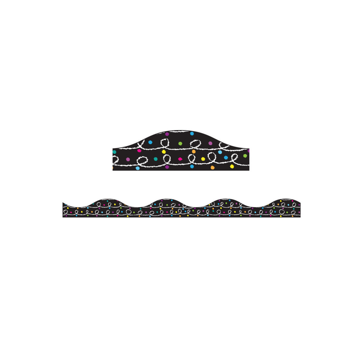 Ashley Productions® Magnetic Border, White Chalk Loops with Color Chalk Dots on Black, 12'