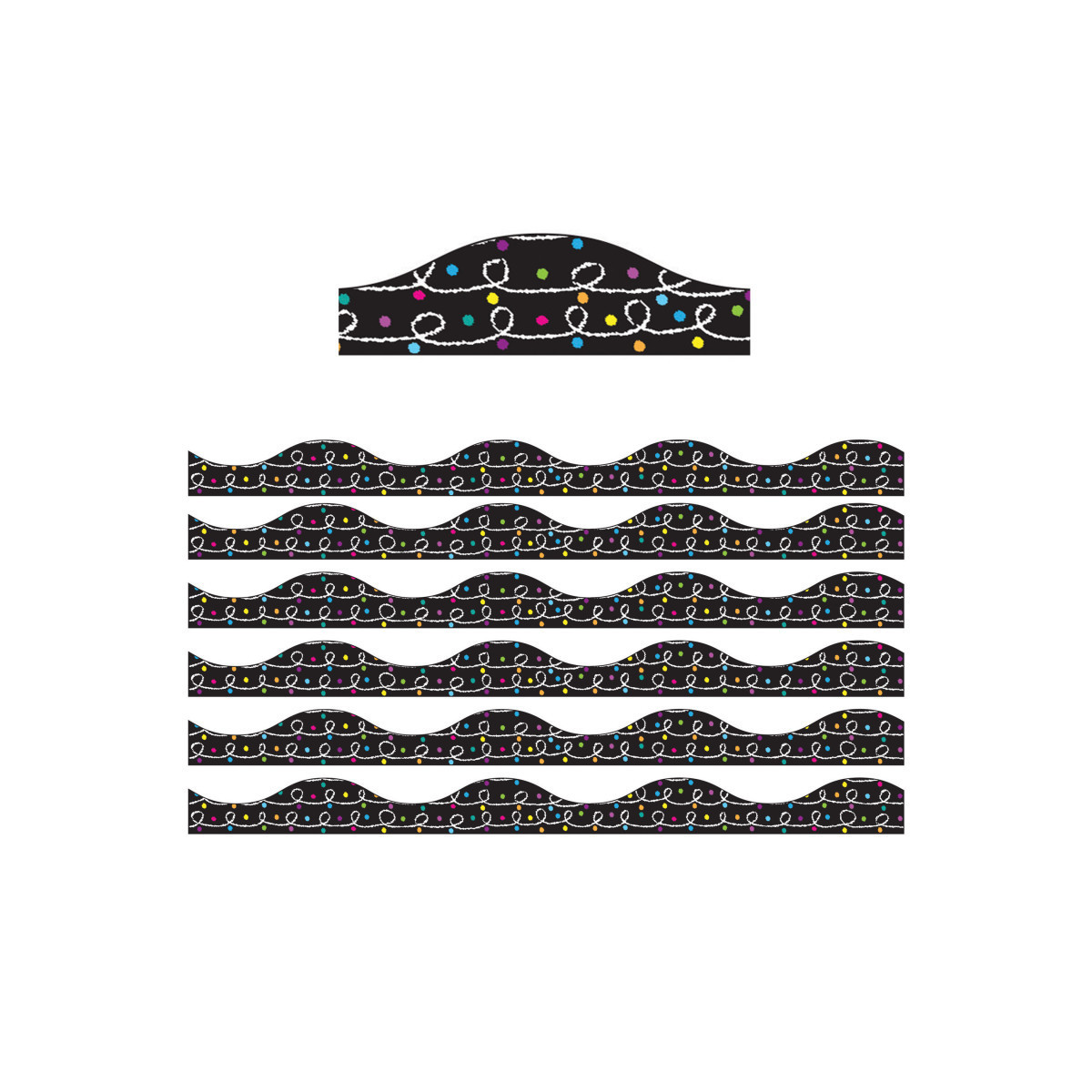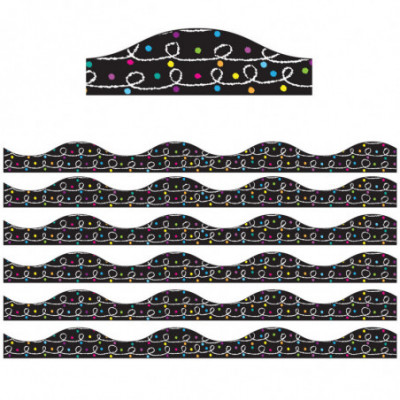 Ashley Productions® Magnetic Scallop Border, White Chalk Loops with Color Chalk Dots on Black, 12 Feet Per Pack, 6 Packs