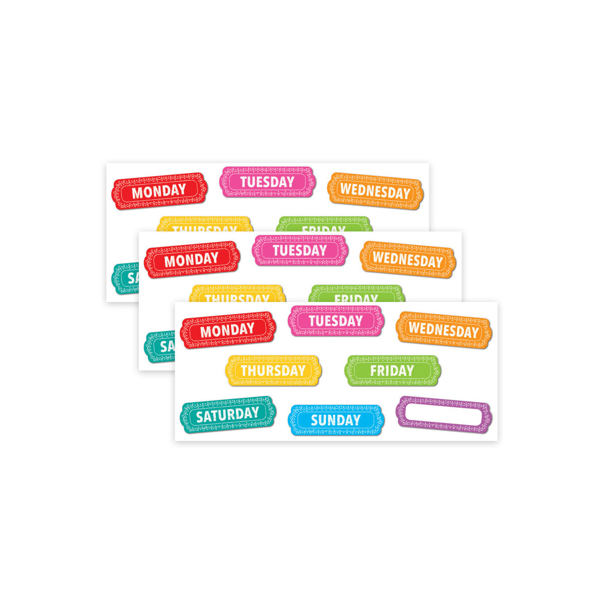 Organize your classroom or home with our magnetic column headers. These pre-printed timesavers feature Days of the Week for DIY calendars on magnetic surfaces with a write-on/wipe-off surface. Write names, goals, assignments, and more underneath each column header. Use blank frame to make your own title. Each pack includes 8 pieces that easily punch out from a die-cut sheet. Sold as 3 packs for a total of 24 pieces.