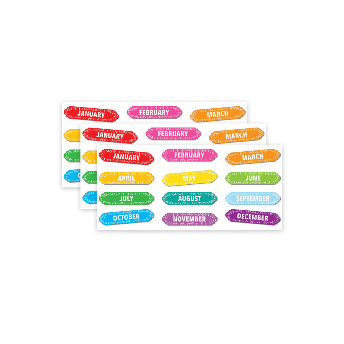 Organize your classroom or home with our magnetic column headers. Use these pre-printed timesavers for DIY calendars on magnetic surfaces. Write names, goals, assignments, and more underneath each column header. Each pack includes 12 pieces (1 per month) that easily punch out from a die-cut sheet. Sold as 3 packs for a total of 36 pieces.