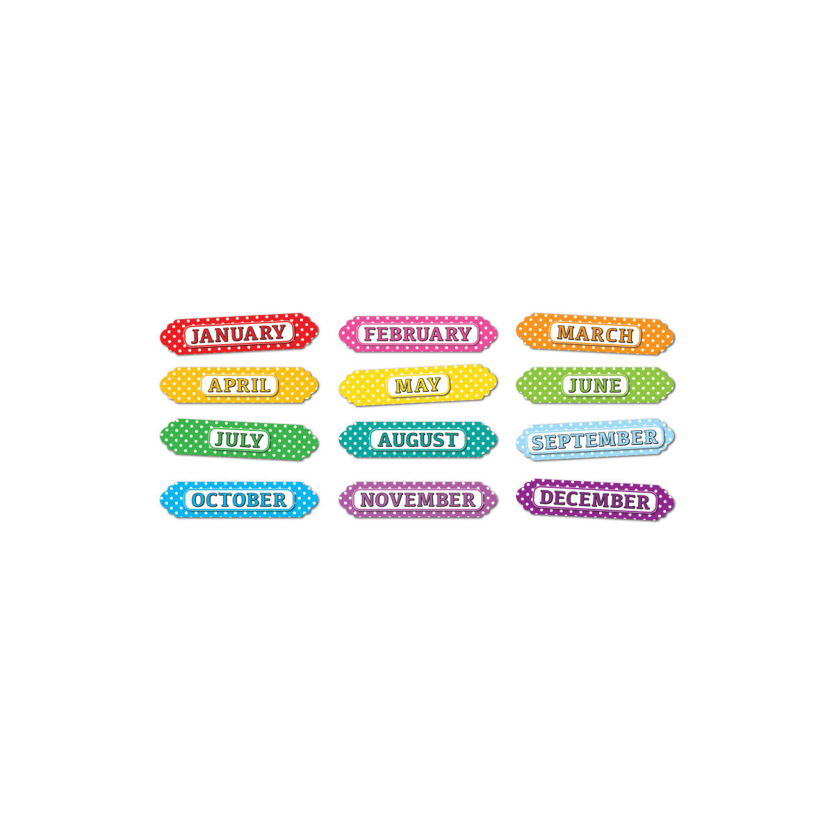 Organize your classroom or home with our magnetic column headers. Use these pre-printed timesavers for DIY calendars on magnetic surfaces. Write names, goals, assignments, and more underneath each column header. Each pack includes 12 pieces (1 per month) that easily punch out from a die-cut sheet.