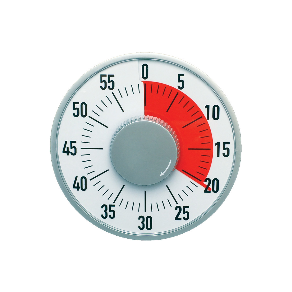 Big Time To Go 6" timer is great for testing, games, and general classroom time management. Magnetic-backed with a built-in stand, this wind-up timer with alarm requires no batteries, and features a 60 minute countdown.