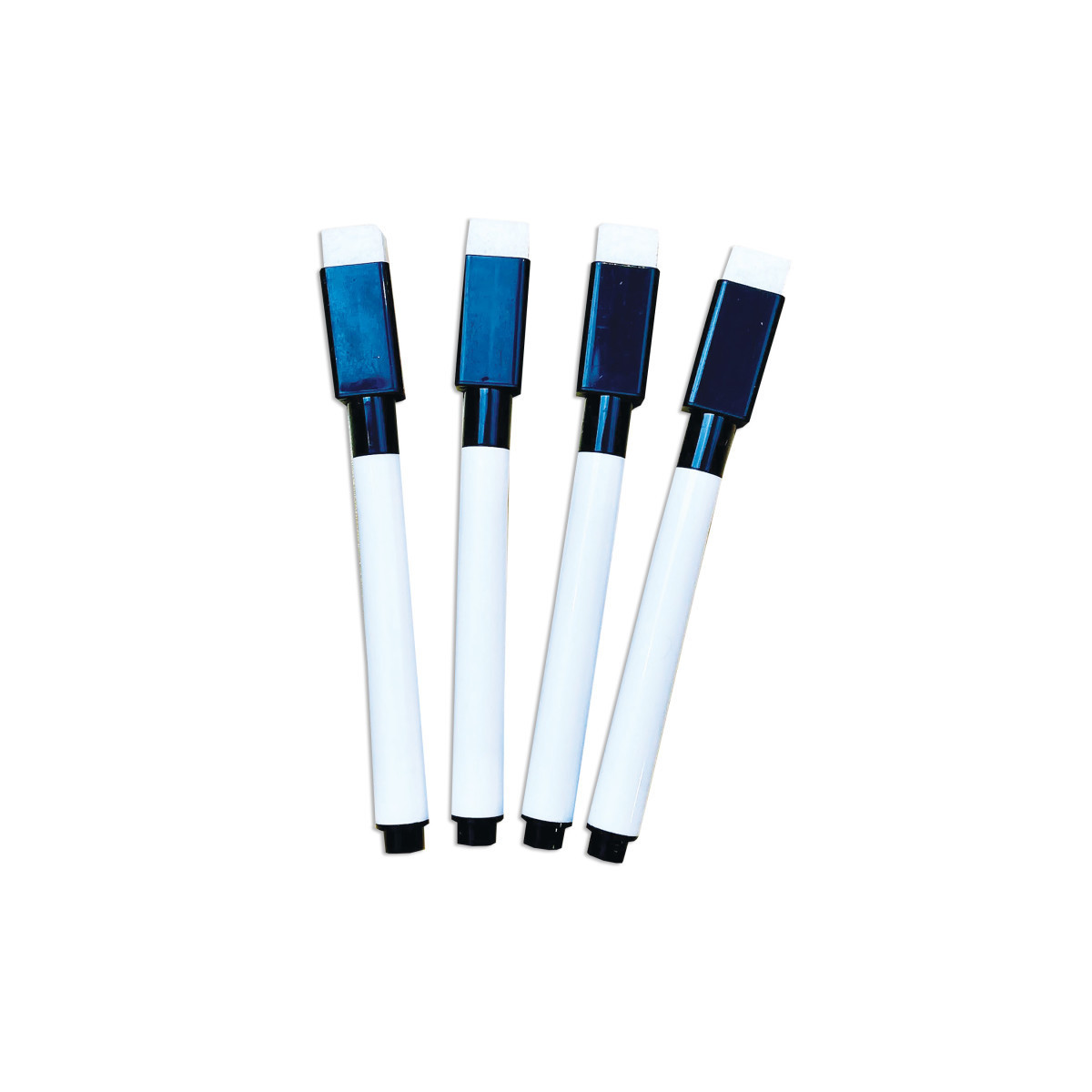Fine point dry erase markers easily clean and wipe from any dry erase surface. The cap has an eraser attached for easy removable of ink from all dry erase surfaces. Perfect for travel and classroom work. Each pack includes 4 black dry erase markers.