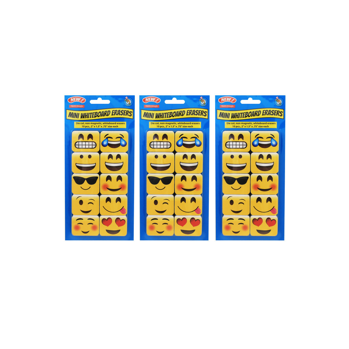 Ashley Productions® Non-Magnetic Mini Whiteboard Erasers, Emotions Icons, 10 Per Pack, 3 Packs