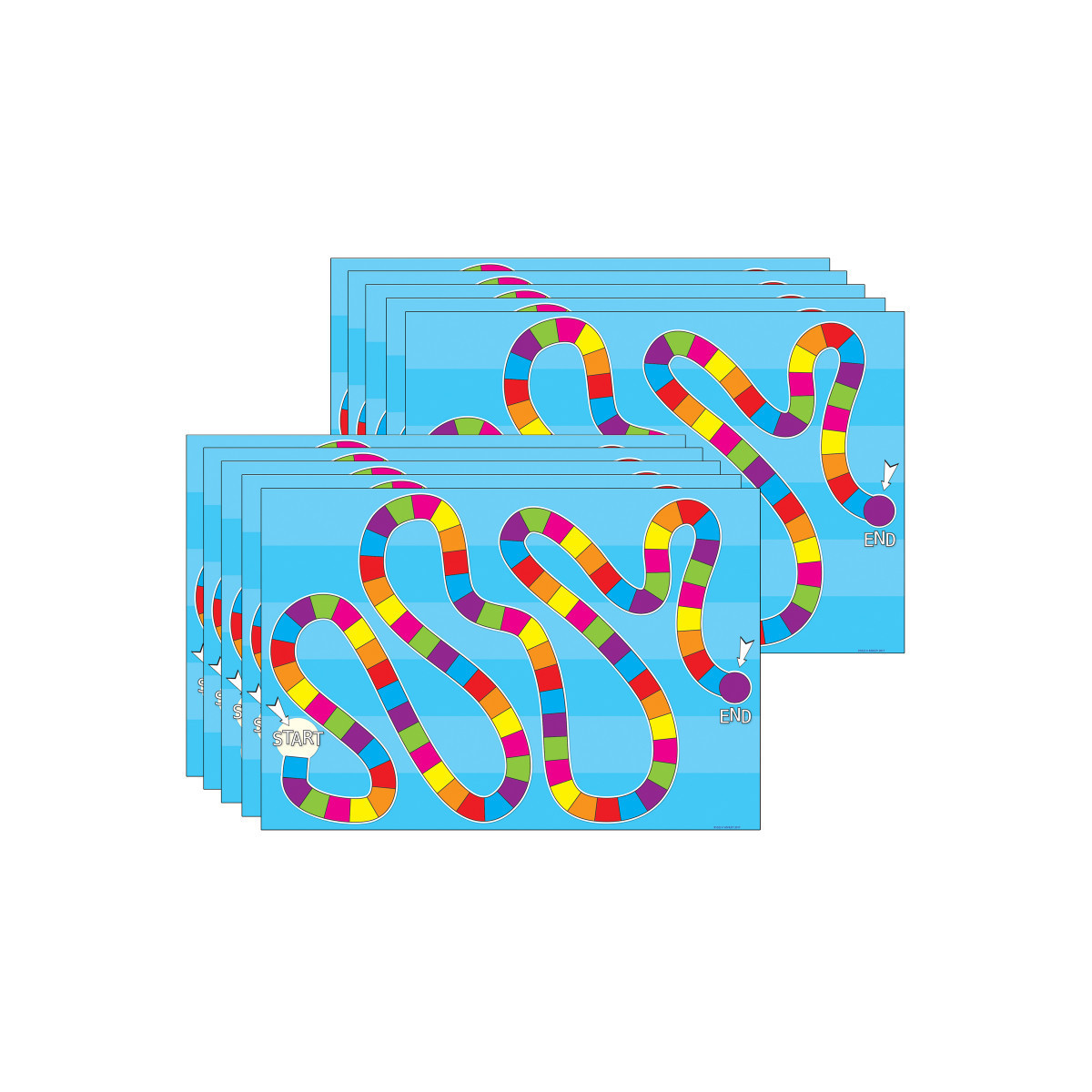 This material from Ashley is called SMART POLY. The material has been designed for charts in the classroom and home. These charts are strong, durable, water proof, and do not need lamination. They can be displayed like any chart with staples, pins, and more. The surface is designed for dry erase and water based markers. Game Board Blank Spaces Smart Poly Chart measures 13" x 19" with a dry-erase, glossy surface, .45mm. Sold as a pack of 10 identical charts.