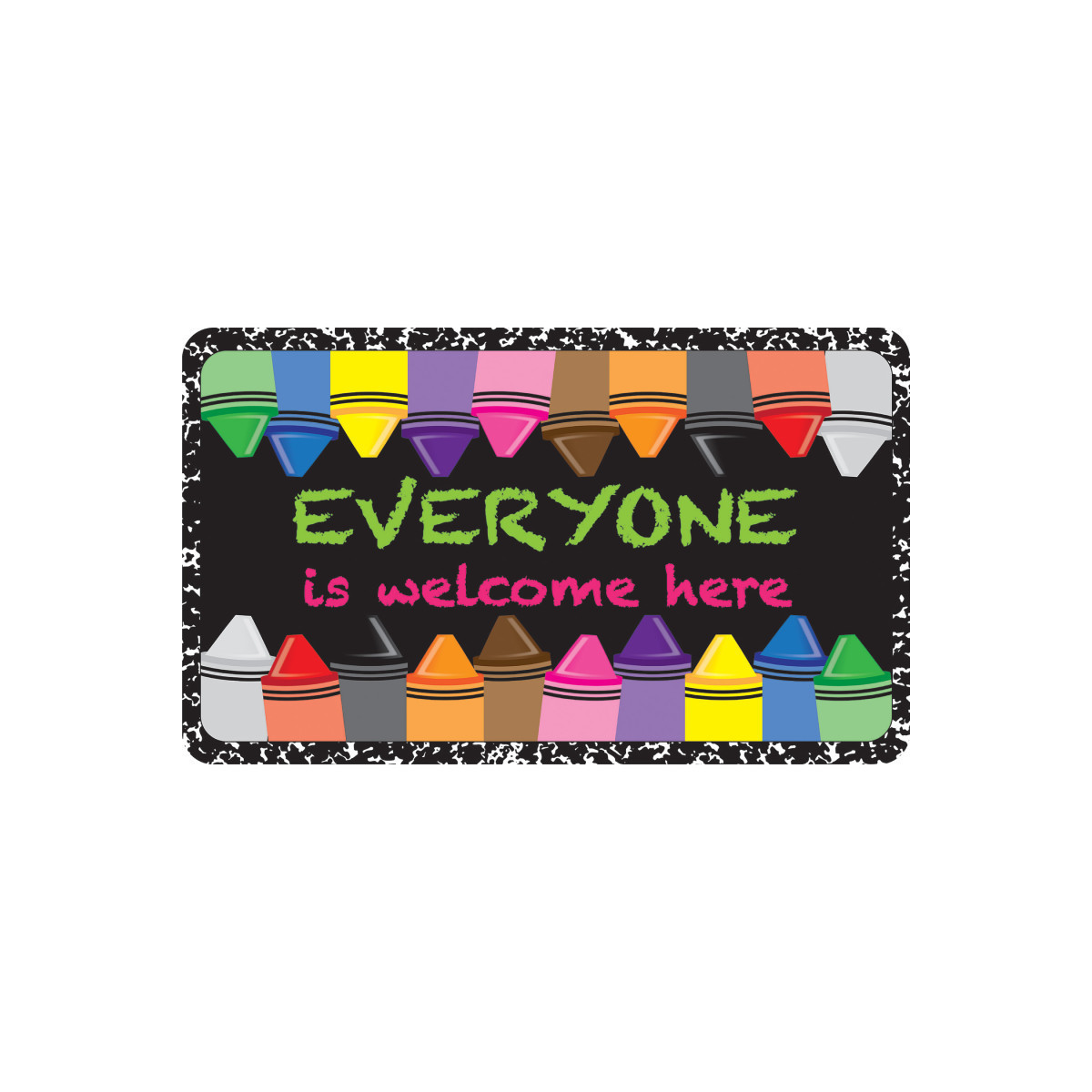 - Measurements and Design: The Everyone Welcome Crayons Composition Welcome Mat measures 18" x 30".