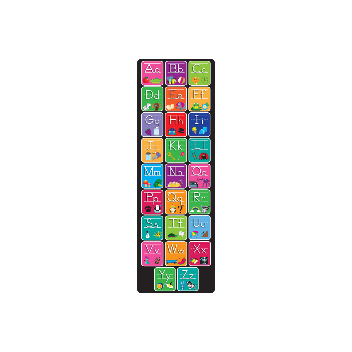 - Measurements and Design: The Alphabet and Matching Pictures Mat Runner measures 15.5" x 47".
