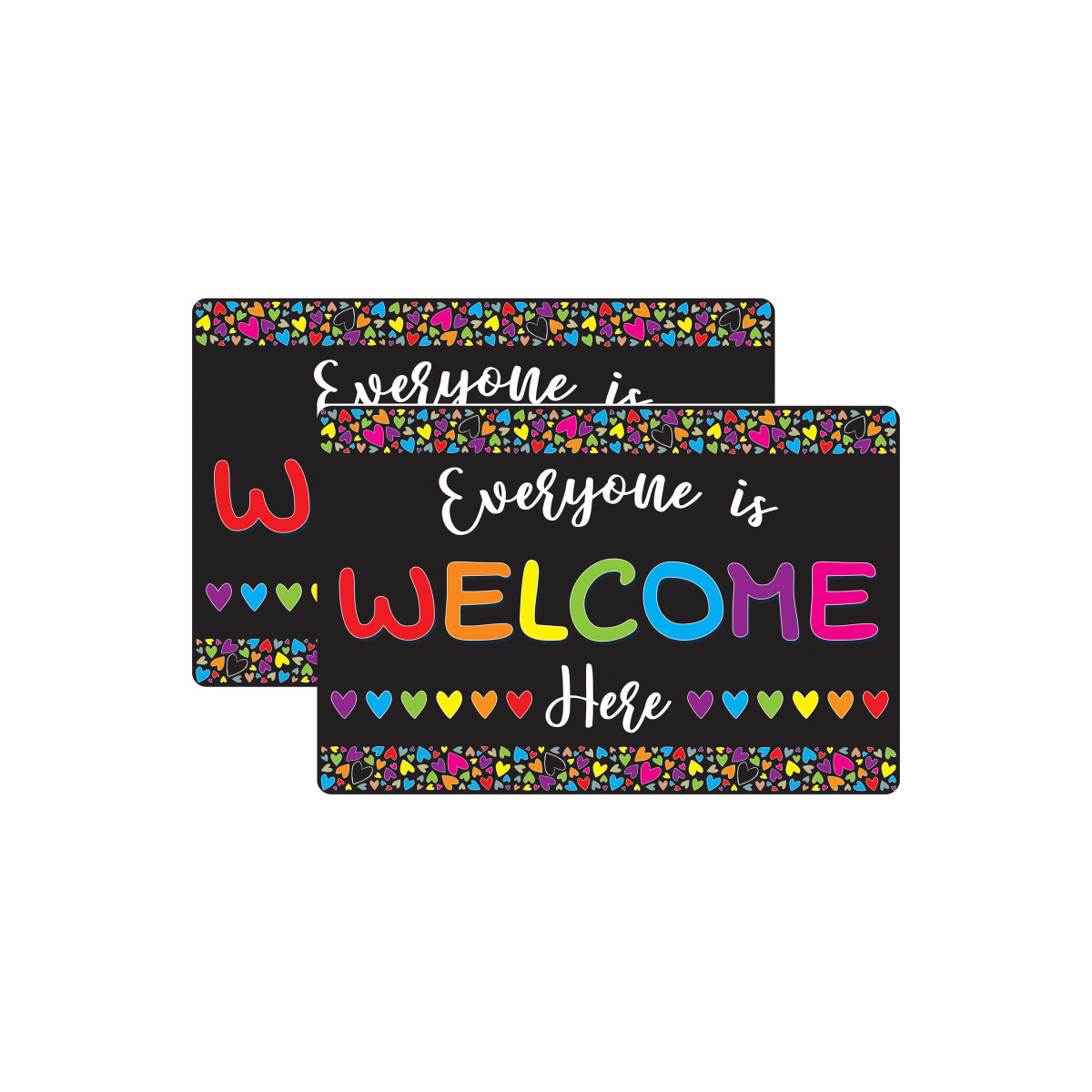 Smart Poly® Welcome Mat with Slip Resistant Backing, 15.5" x 23.5", Everyone is Welcome Here, Hearts, Pack of 2