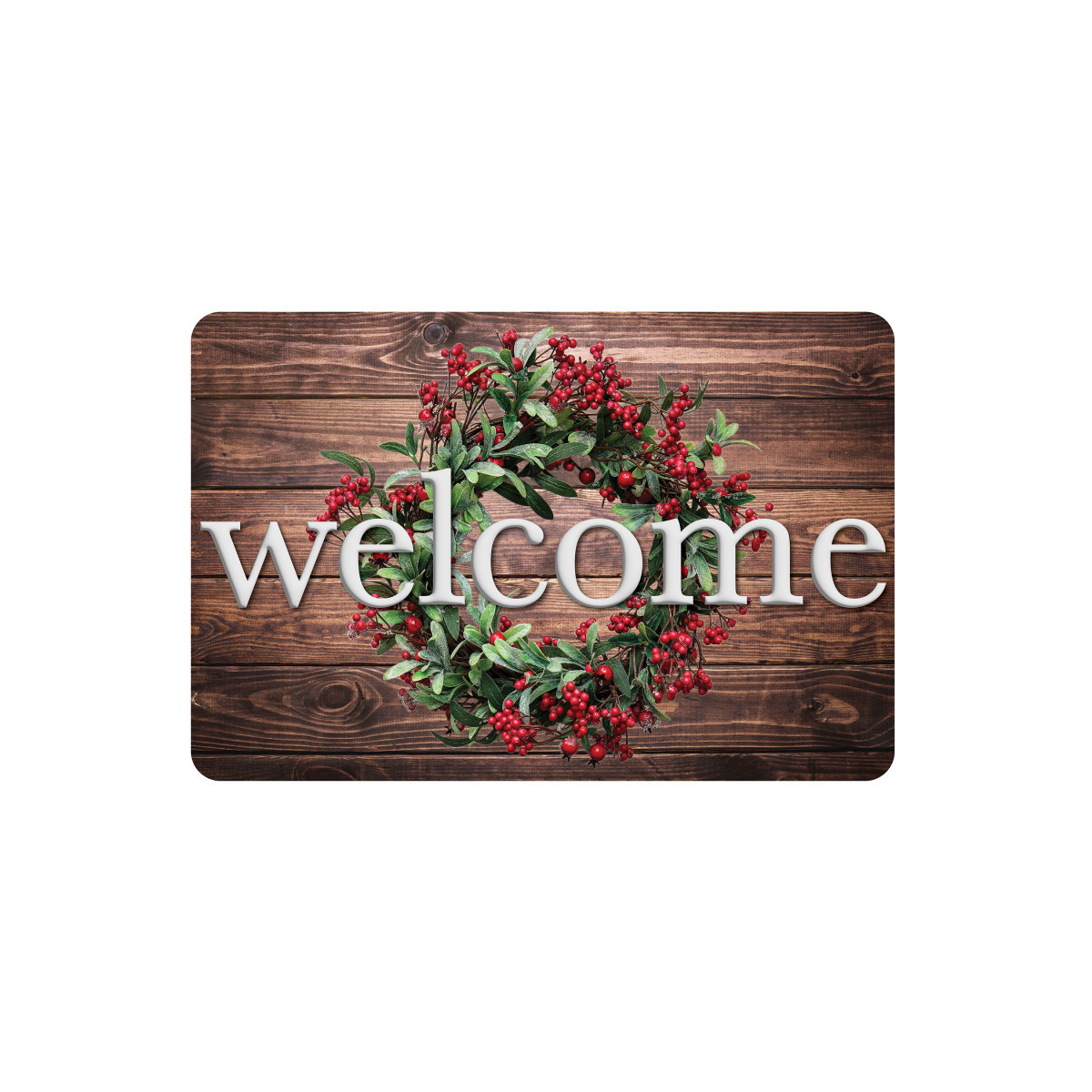 - Measurement & Design: The Winter Berries Wreath Rustic Wood Welcome Mat measures 15.5" x 23.5".