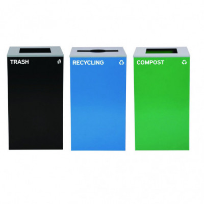 Quick view 29 Gallon Trash/Recycling Cans, Steel, Blue Recycling Can/Mixed Lid, Green Compost Can and Black Trash Can with Square Lids $1,819.85 Add to cart Wishlist Compare