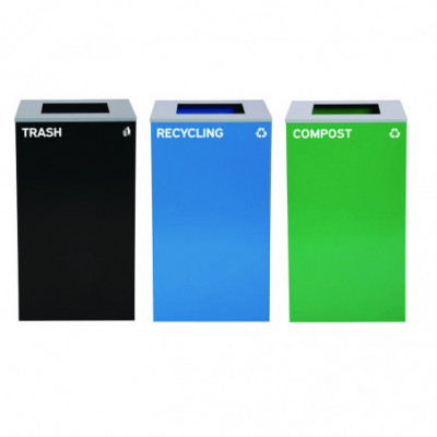 Quick view 29 Gallon Trash/Recycling Cans, Steel, Blue Mixed Recycling Can, Green Compost Can, Black Trash Can with Square Lids $1,819.85 Add to cart Wishlist Compare