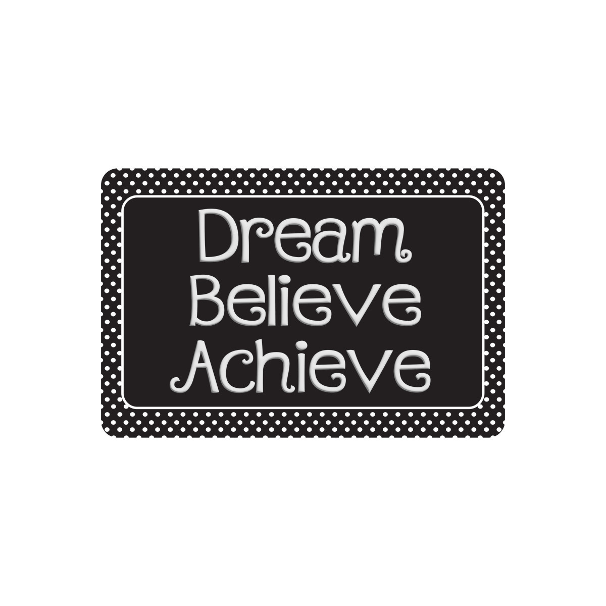 - Measurement & Design: The Dream, Believe, Achieve, Black with White Dots Mat measures 15.5" x 23.5".