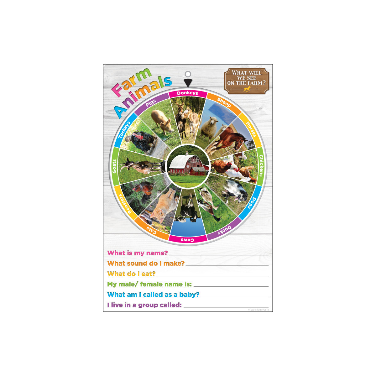 Smart Poly® material has been designed for charts in the classroom and home. The charts are strong, durable, water proof, and do not need lamination. The write-on/wipe-off surface is designed for dry erase or water based markers and washable crayons. Smart Poly Chart measures 13" x 19" with a heavy duty, glossy surface, .45mm. Grommet hole for easy hanging. Two pieces, no assembly required. Turn the wheel to pick an animal and fill in the information below to learn about each animal.