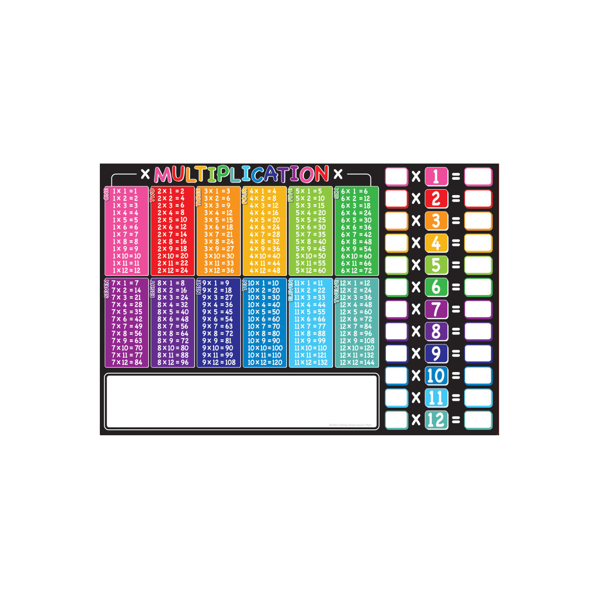 Ashley Productions® Placemat Studio™ Smart Poly® Multiplication Tables Learning Placemat, 13" x 19", Single Sided, Pack of 10
