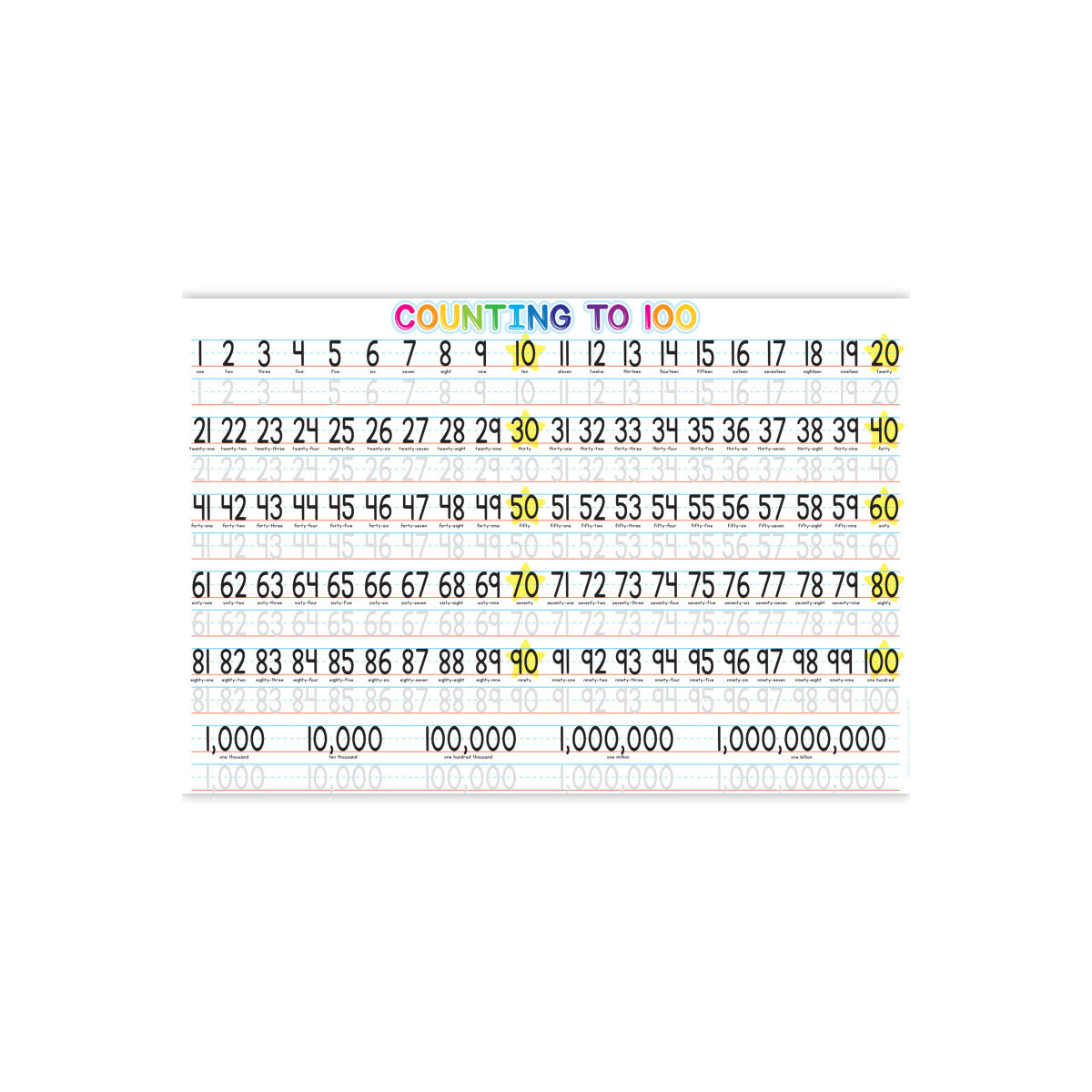 Ashley Productions® Placemat Studio™ Smart Poly® 1-100 Counting Learning Placemat, 13" x 19", Single Sided, Pack of 10