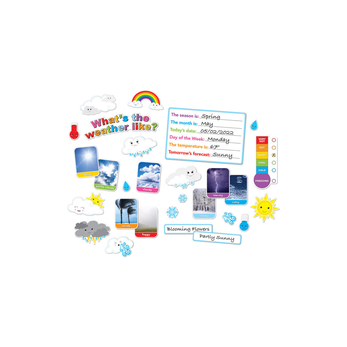 Smart Poly® material has been designed for charts in the classroom and home. Write-on/wipe-off heavy duty washable all poly material, no lamination needed. Material is designed to be long lasting, easy to clean, waterproof, and durable for many years of use. Use with dry erase or water based markers and washable crayons for interactive play and educational development. Use with Ashley Smart Tak®, pins, tacks, staples, etc. to hang in the classroom. Great for reusable learning. Each bulletin board set includes 30 pieces.