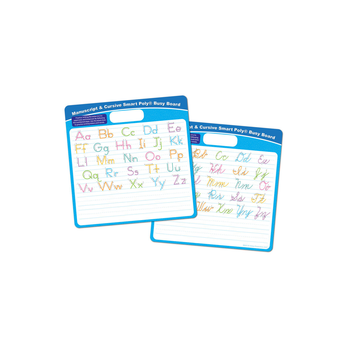 Ashley Productions® Smart Poly® Educational Activity Busy Board, Dry Erase with Marker, 10-3/4" x 10-3/4", Manuscript/Cursive
